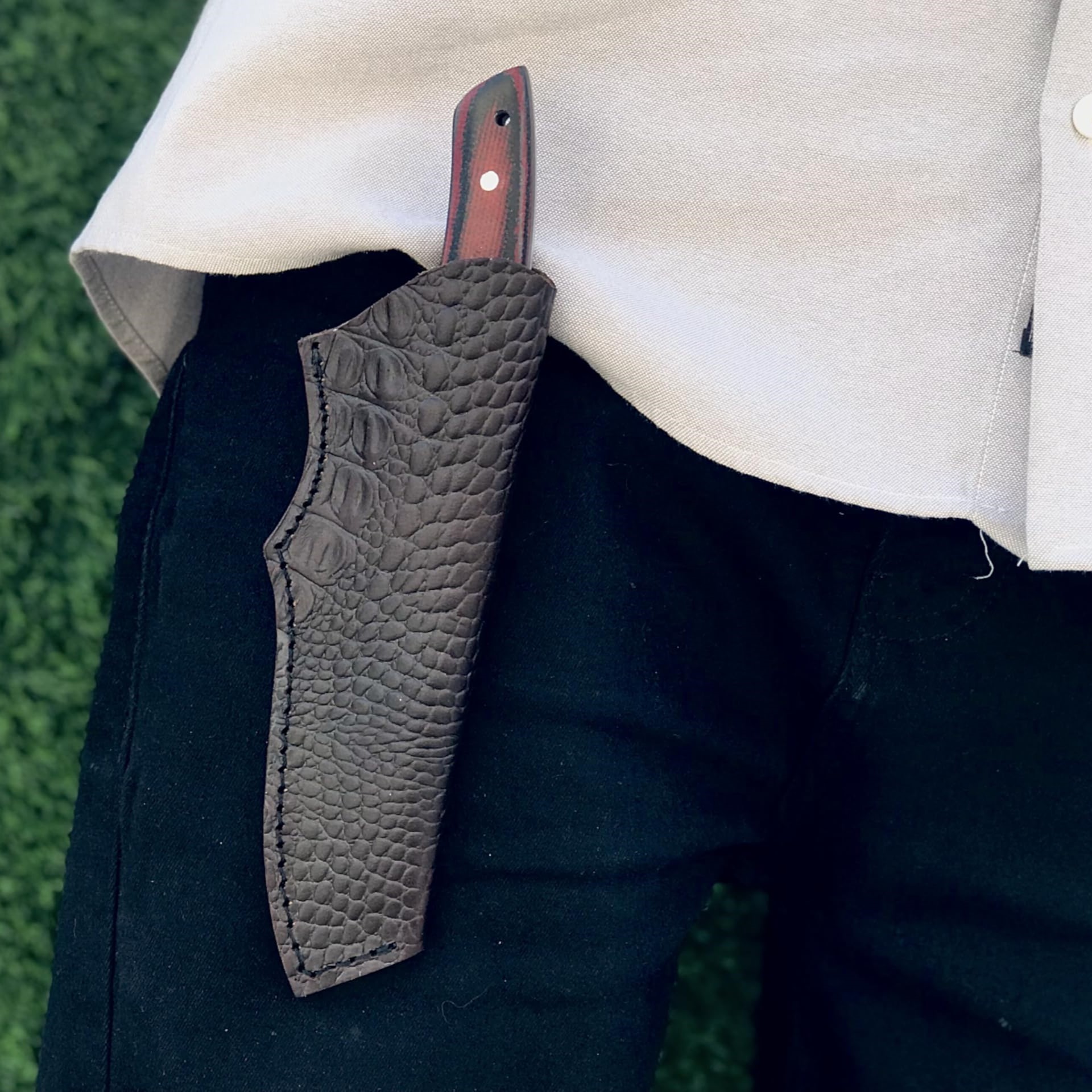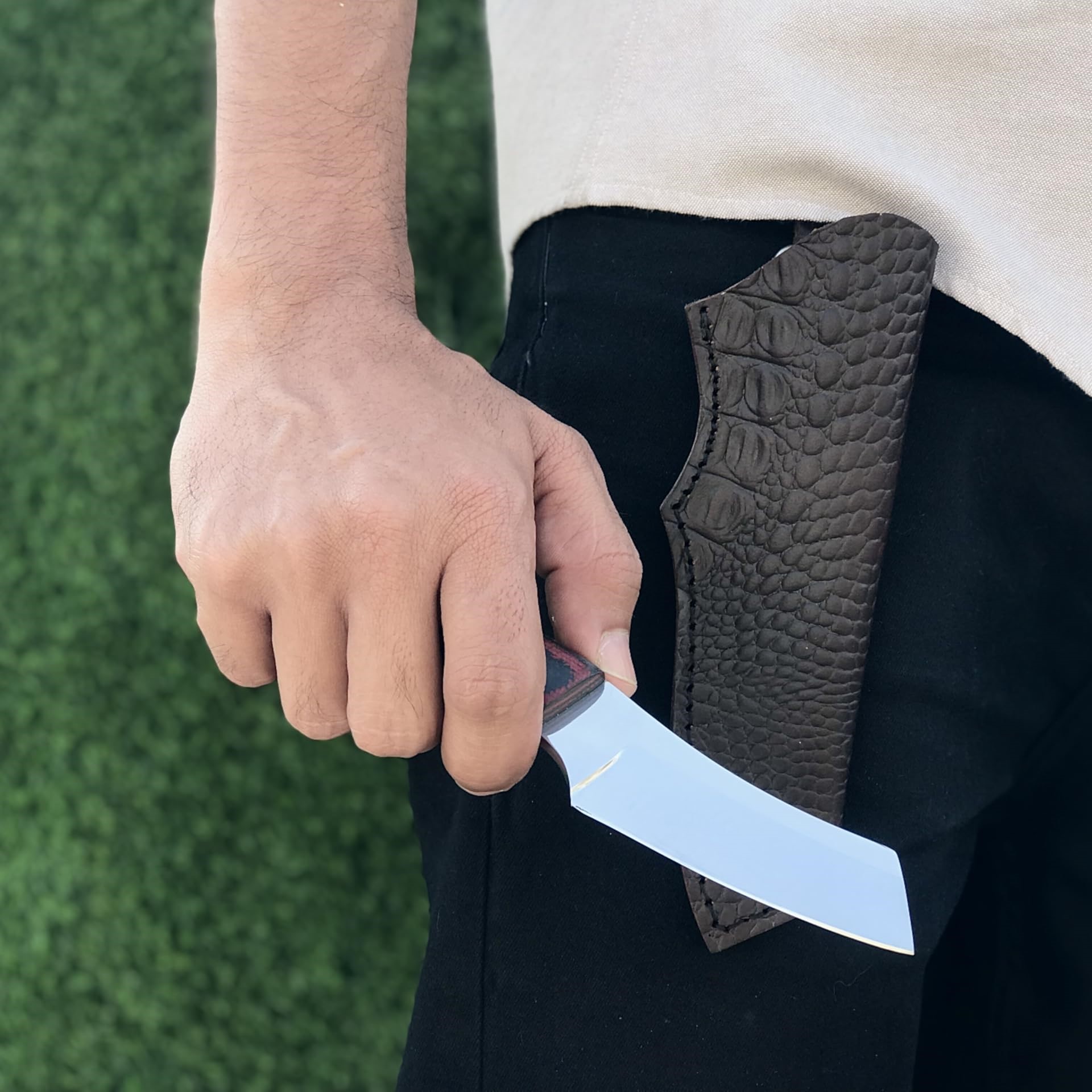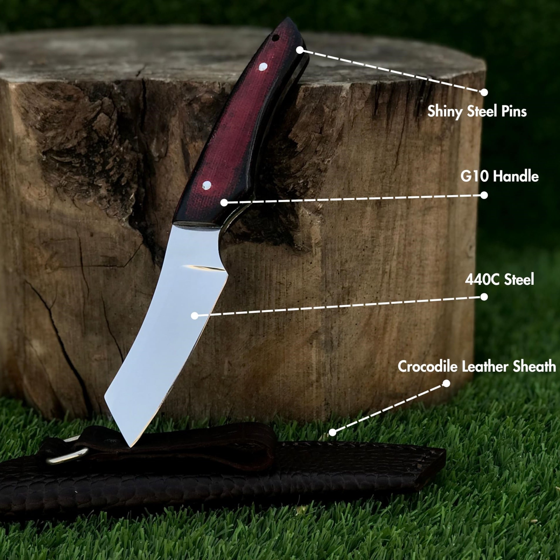 Each knife comes with a handmade crocodile-pattern leather sheath, offering both protection and style during travel or field use. Whether you’re camping, hunting, or tackling survival tasks, this knife is built to perform and impress.