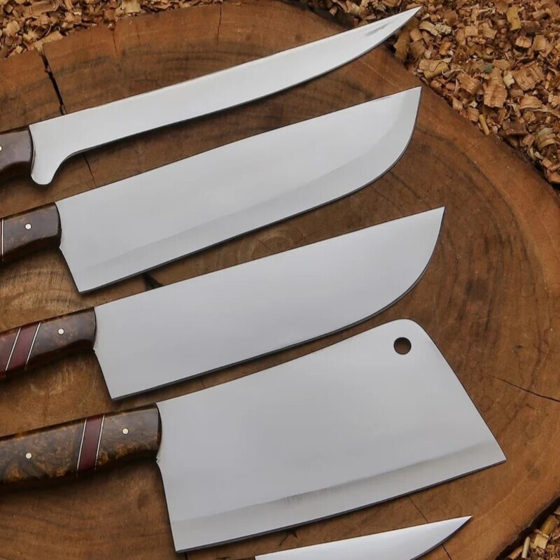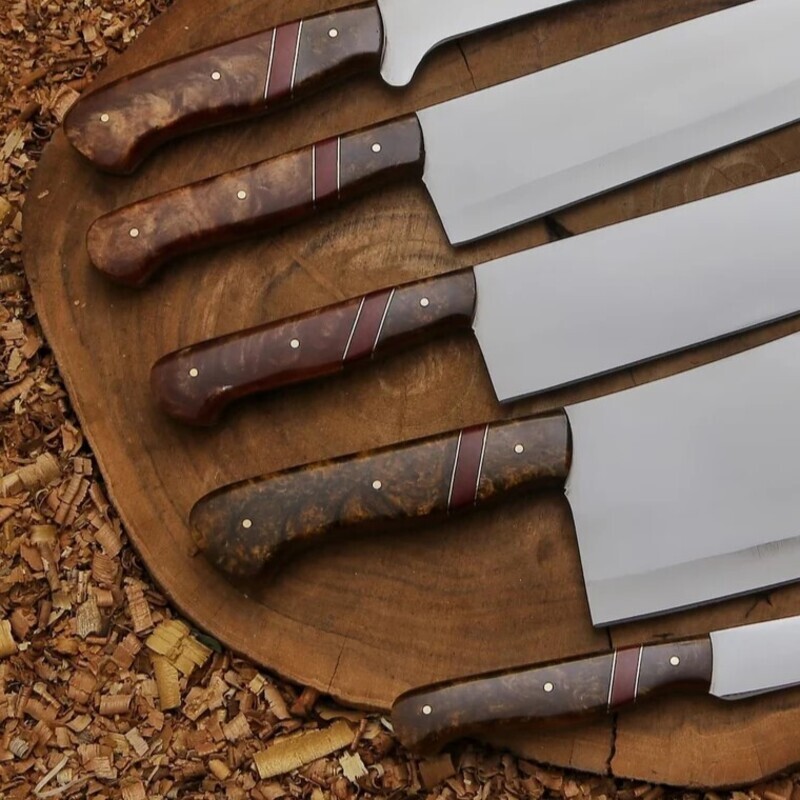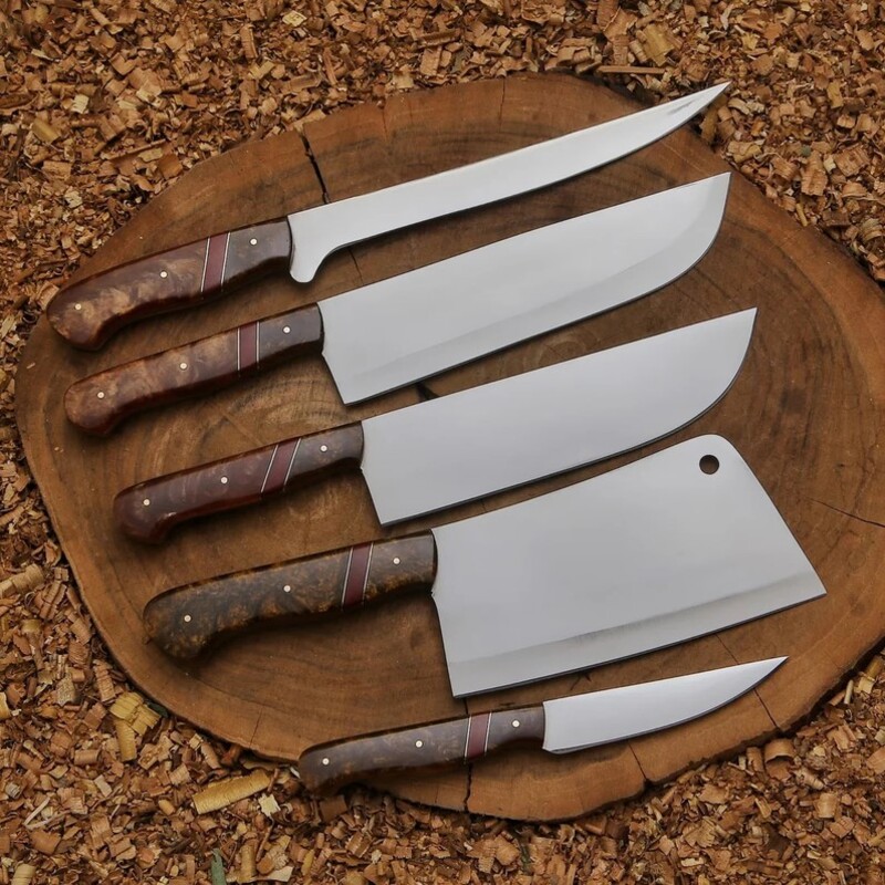 Be the first to review “5-Piece Handmade Damascus Chef Knife Set – Chef, Fillet, Cleaver, Paring Knives with Leather Sheath”