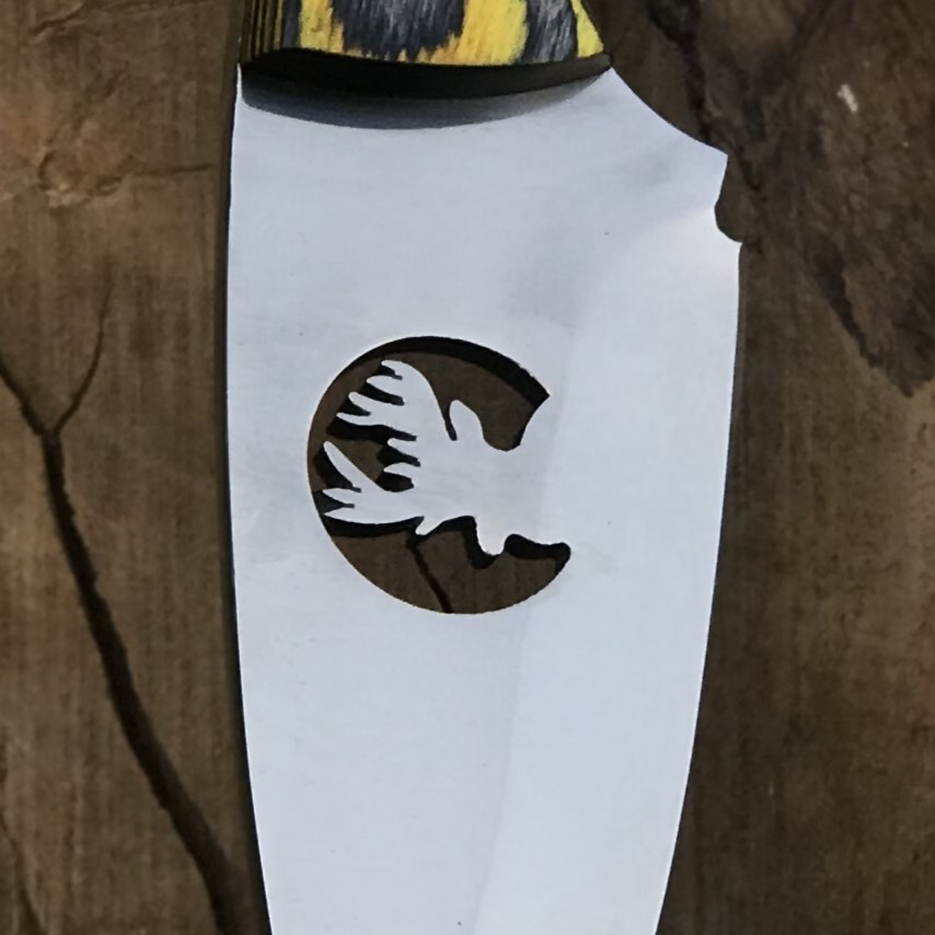 CNC Engraved Outdoor Knife with Mirror Polish Blade – Color Wood Handle Gardening Knife Camping Utility Knife
