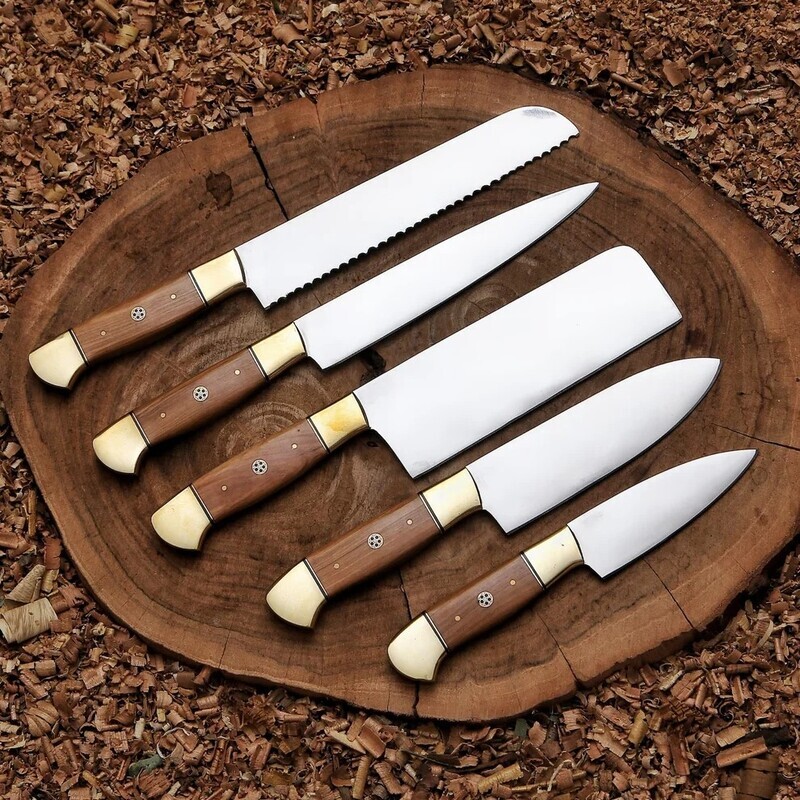 Elevate your culinary experience with this handmade 5-piece chef knife set, designed for professional chefs and home kitchen enthusiasts. Each knife is crafted from mirror-polished high-carbon steel, providing exceptional sharpness, edge retention, and durability for all culinary tasks.
