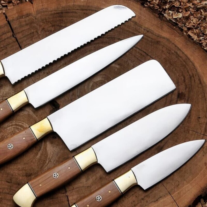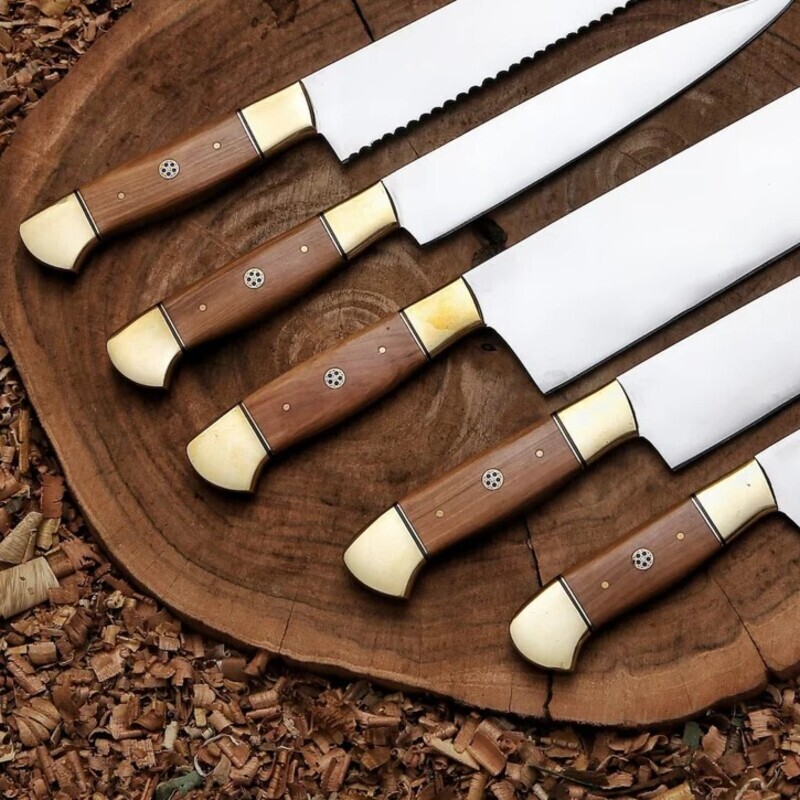 The blades range from 4″ to 9″, allowing precision cutting, slicing, chopping, and carving. Ergonomically designed cow wood handles with brass bolsters ensure a secure, balanced grip for maximum control during use.