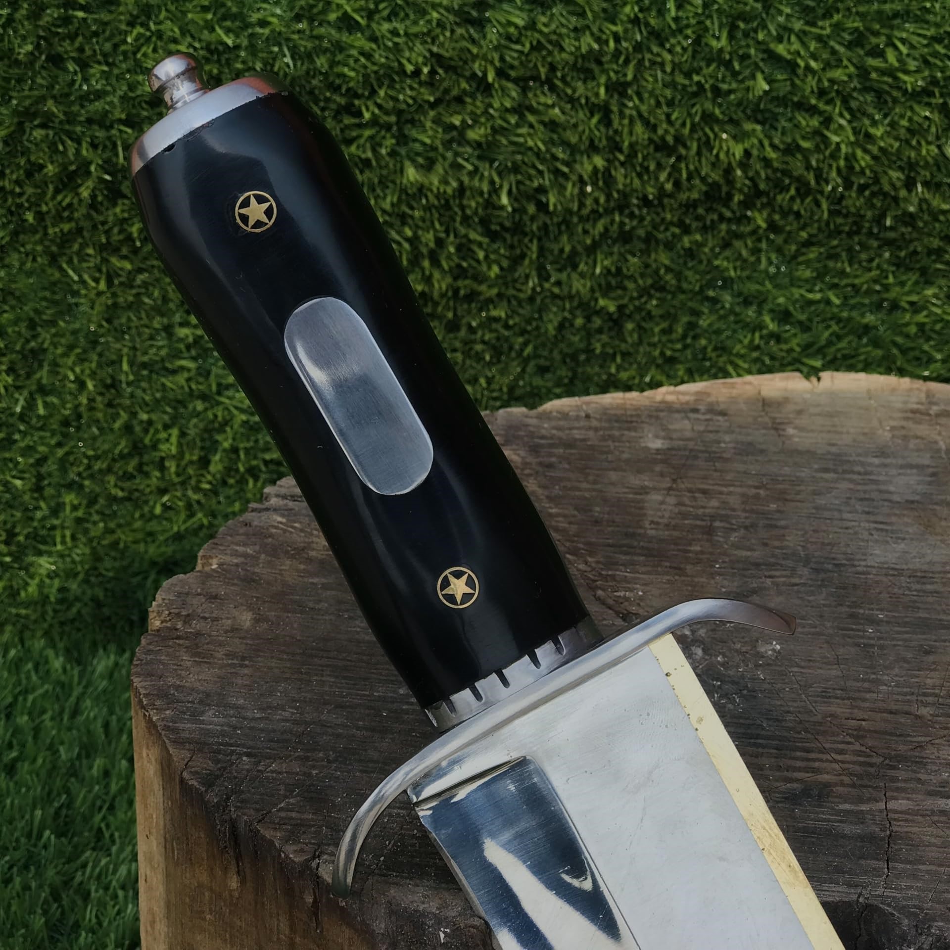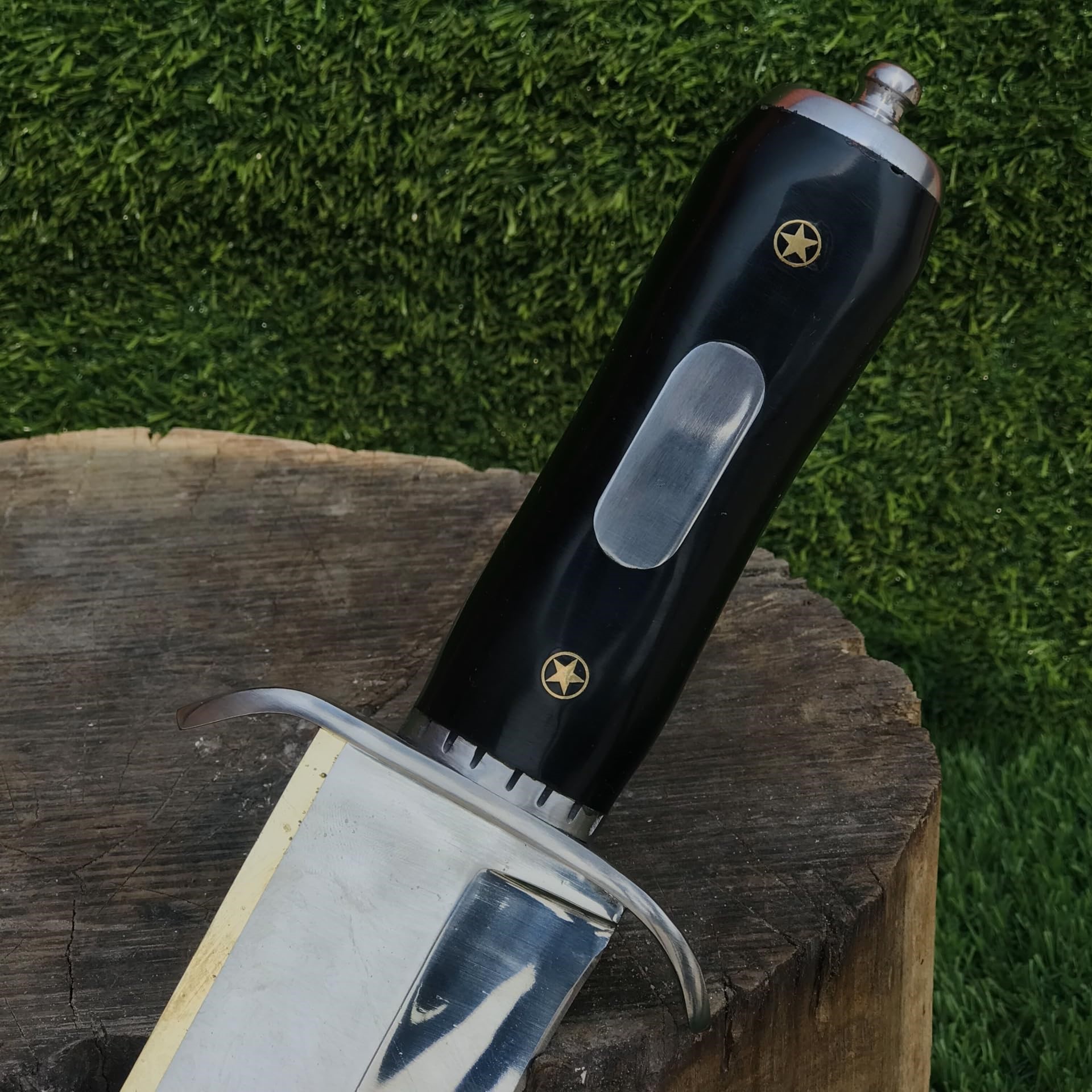 The 12-inch blade is crafted from high-carbon 1095 steel, known for its strong edge retention and long-lasting sharpness. A polished finish enhances its appearance while helping resist wear over time. The blade also features hollow ridges, improving balance and reducing weight for smoother handling.