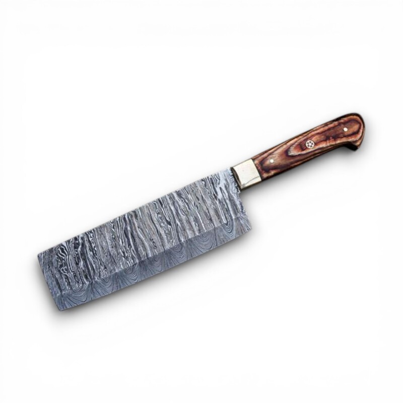 The blades are approximately 4mm thick and feature a luxurious Damascus finish, ideal for chopping, slicing, dicing, and carving. Heat-treated to 55–60 HRC, they hold a razor-sharp edge for precise and effortless cutting.