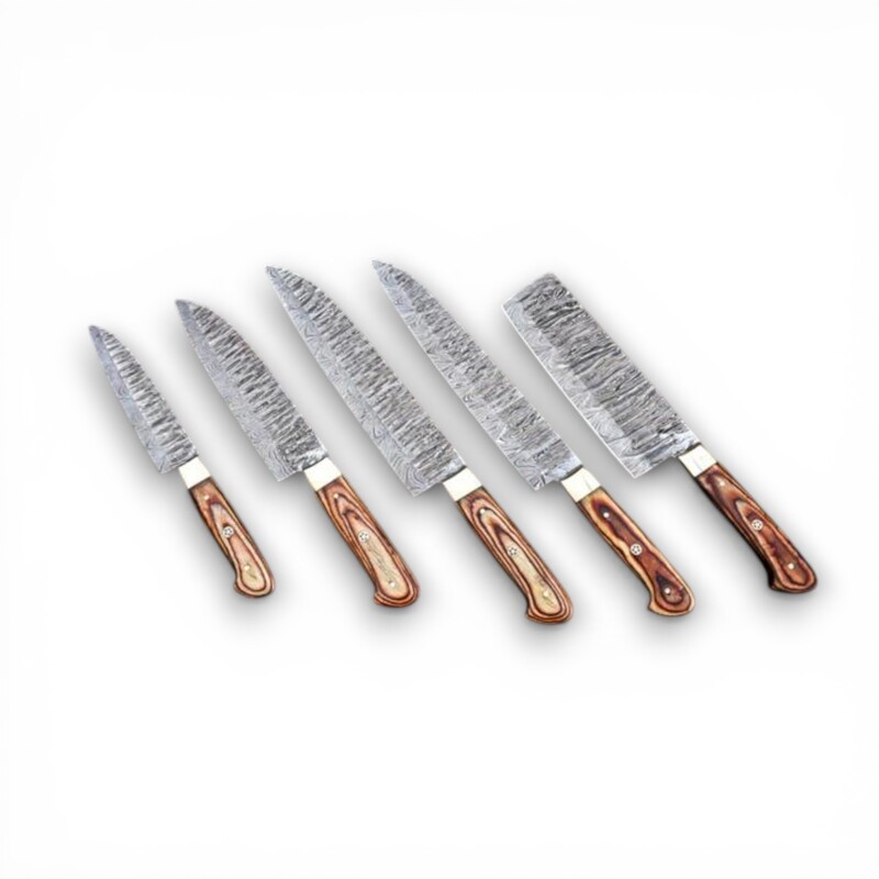 Upgrade your kitchen and culinary skills with this hand-forged 5-piece Damascus steel chef knife set, designed for professional chefs and passionate home cooks. Each knife is individually forged from high-carbon 15N20 and 1095 steel, providing excellent sharpness, edge retention, and long-lasting performance.