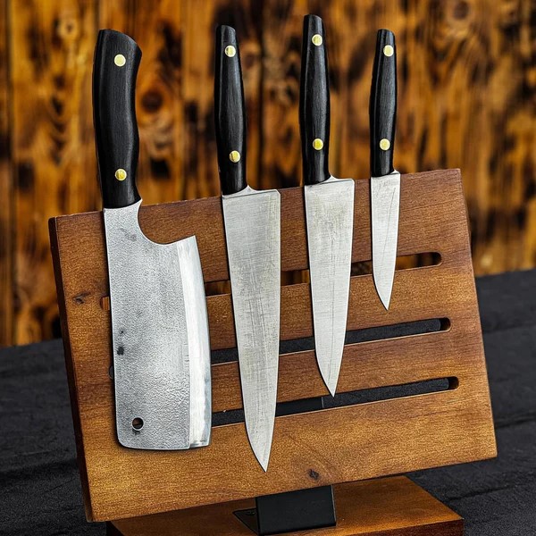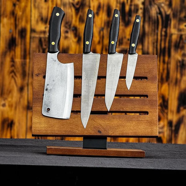 The set includes versatile knives to handle all kitchen tasks—from slicing and chopping to carving and mincing. Ergonomically designed wooden handles provide comfort, balance, and control, making even extended cooking sessions effortless. The included wooden stand keeps your knives organized, safely stored, and elegantly displayed.