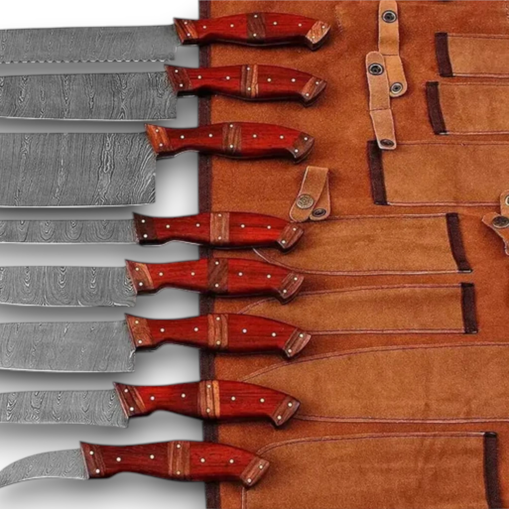 Handmade Damascus Steel Chef Knife Set – Premium Wood Handle Kitchen Knives