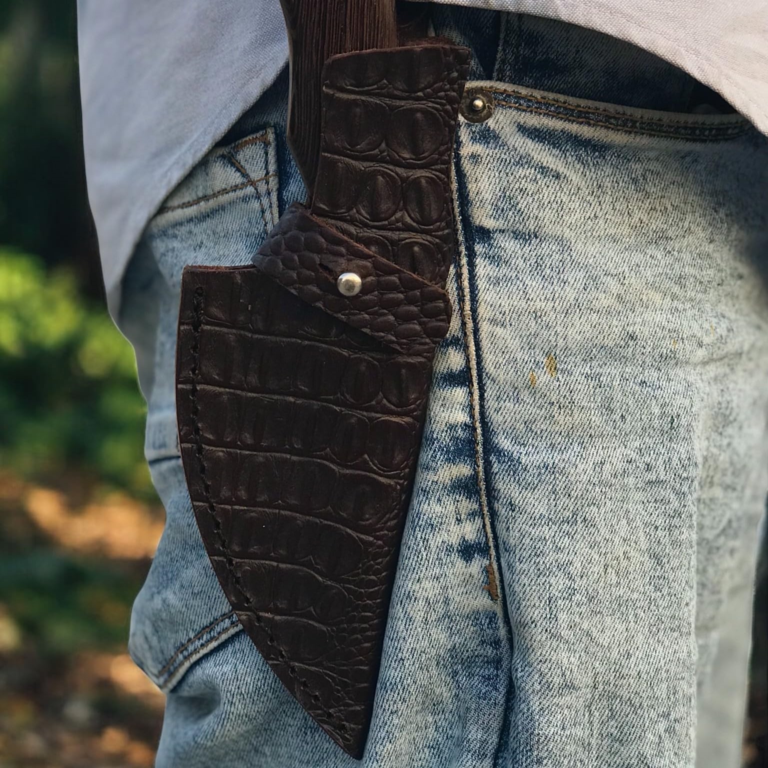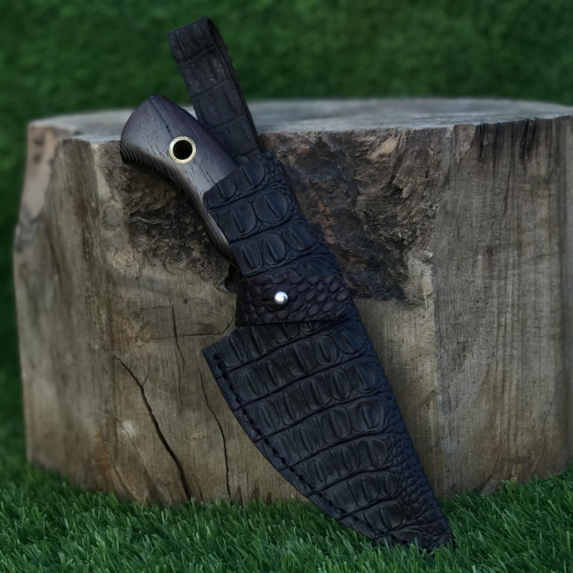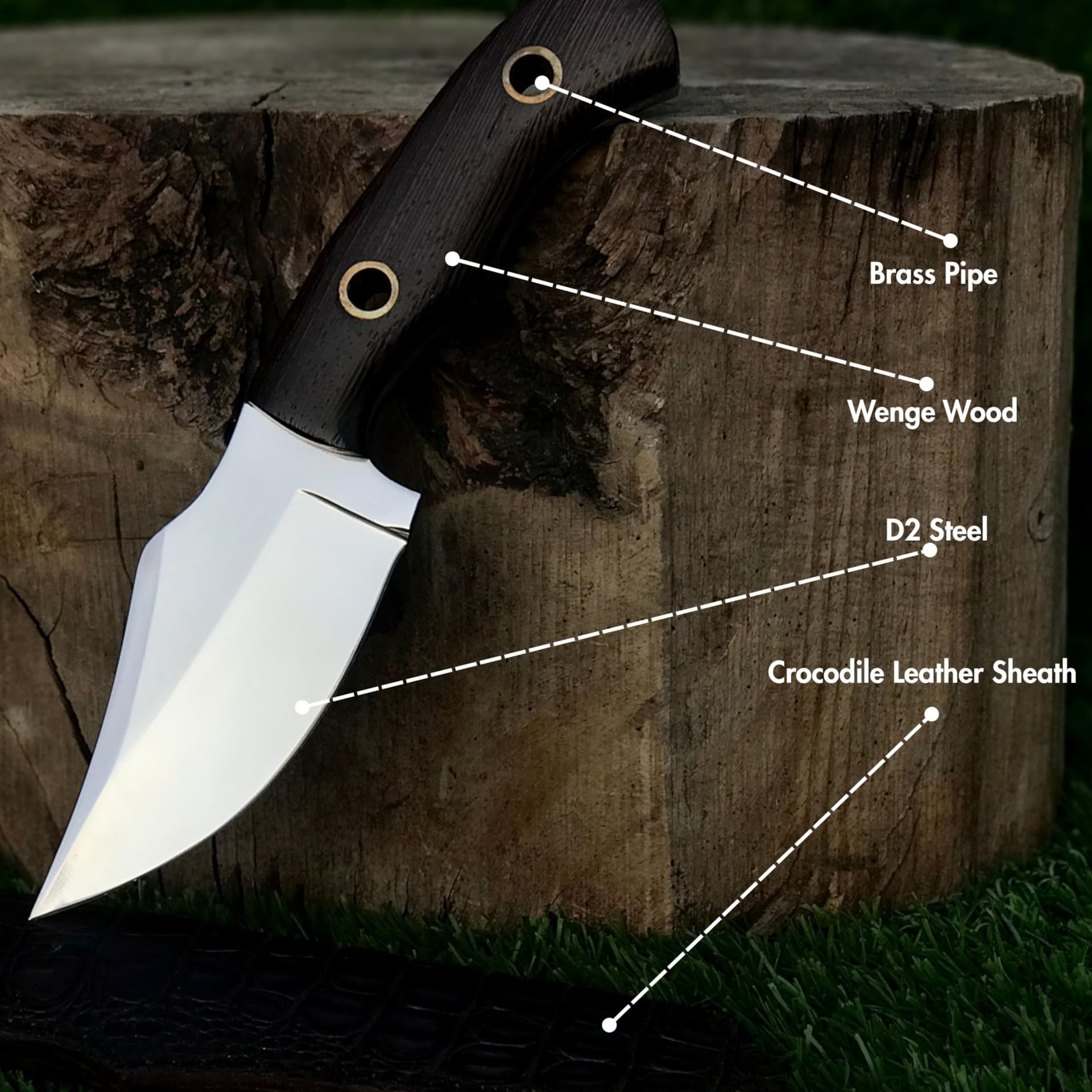 This knife comes with a handcrafted crocodile leather sheath, designed for both protection and style — perfect for safe carrying and long-term use.