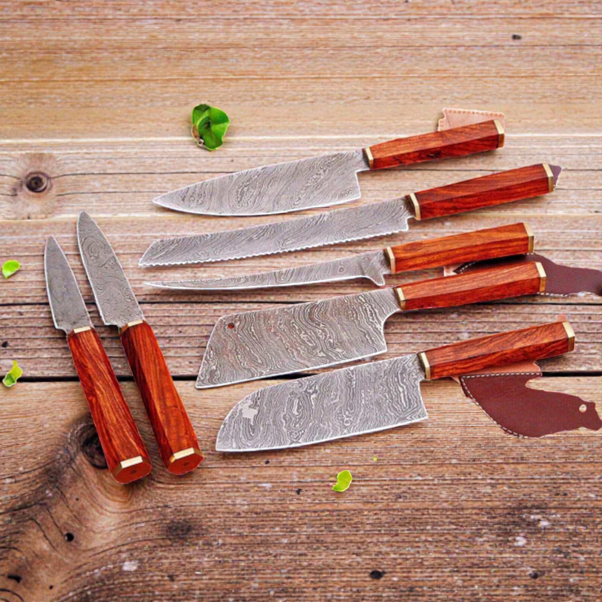 Elevate your cooking with a hand-forged Japanese chef knife set, crafted for chefs, culinary enthusiasts, and home cooks who demand precision and elegance. Each blade is made from Damascus steel, offering a razor-sharp edge, excellent durability, and smooth slicing for vegetables, meat, and fish.