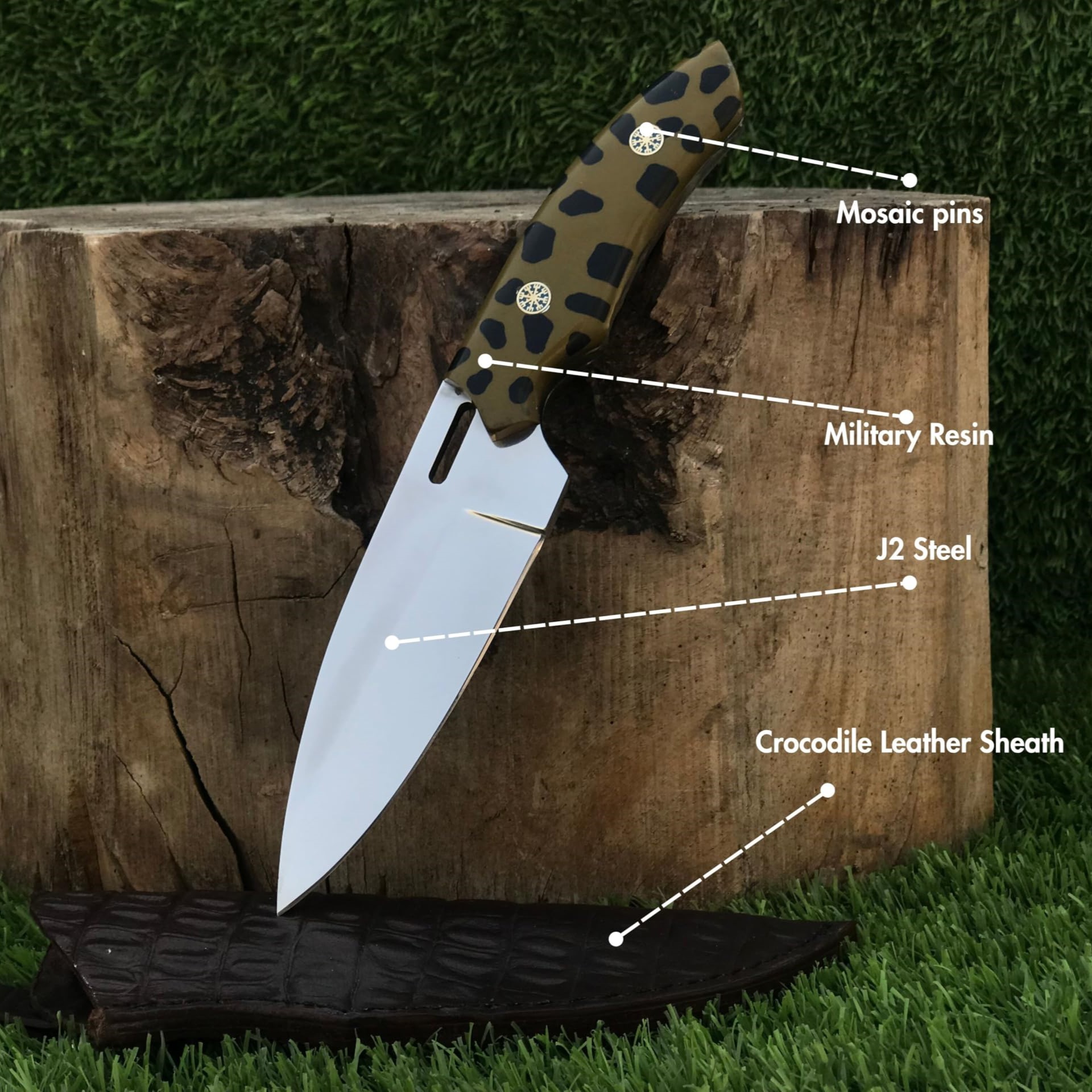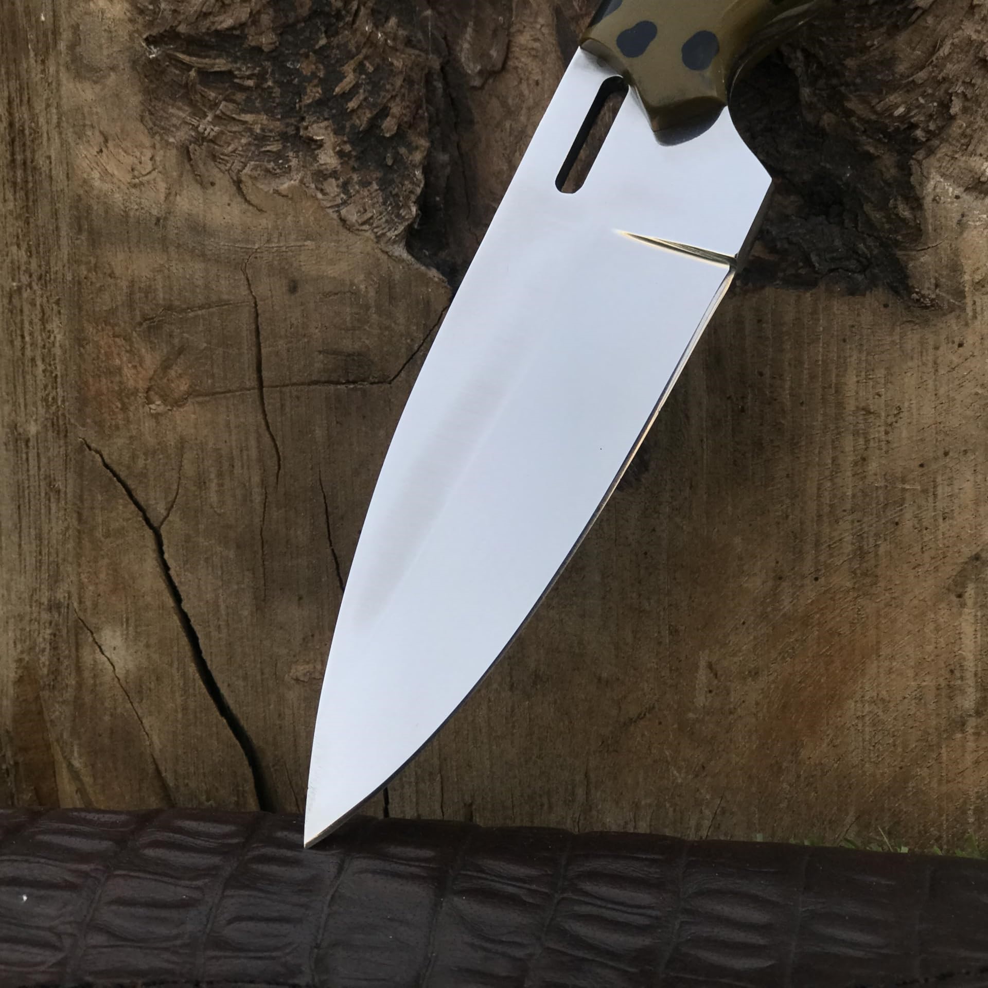 The crocodile leather sheath adds a touch of luxury while ensuring safe storage and easy carry during outdoor adventures. Whether you’re hunting, camping, hiking, or on survival missions, this knife is built to perform in any condition.