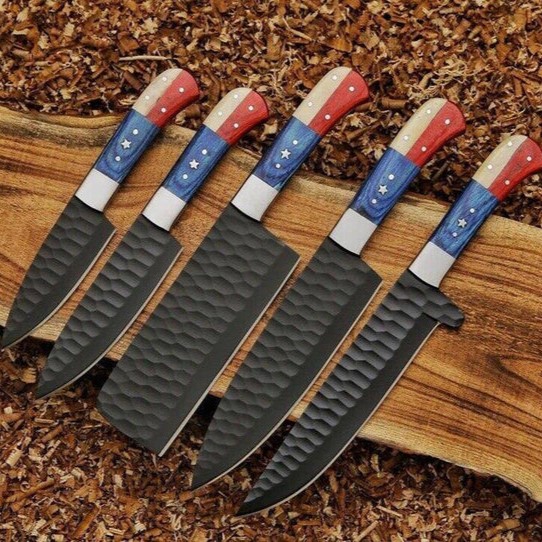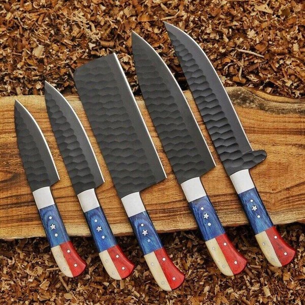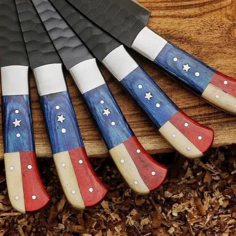 Bring precision, artistry, and American pride to your kitchen with the USA Flag Handle Chef Knife Set. Each knife is hand-forged from premium high-carbon steel and coated for corrosion resistance, giving you blades that are as durable as they are sharp.