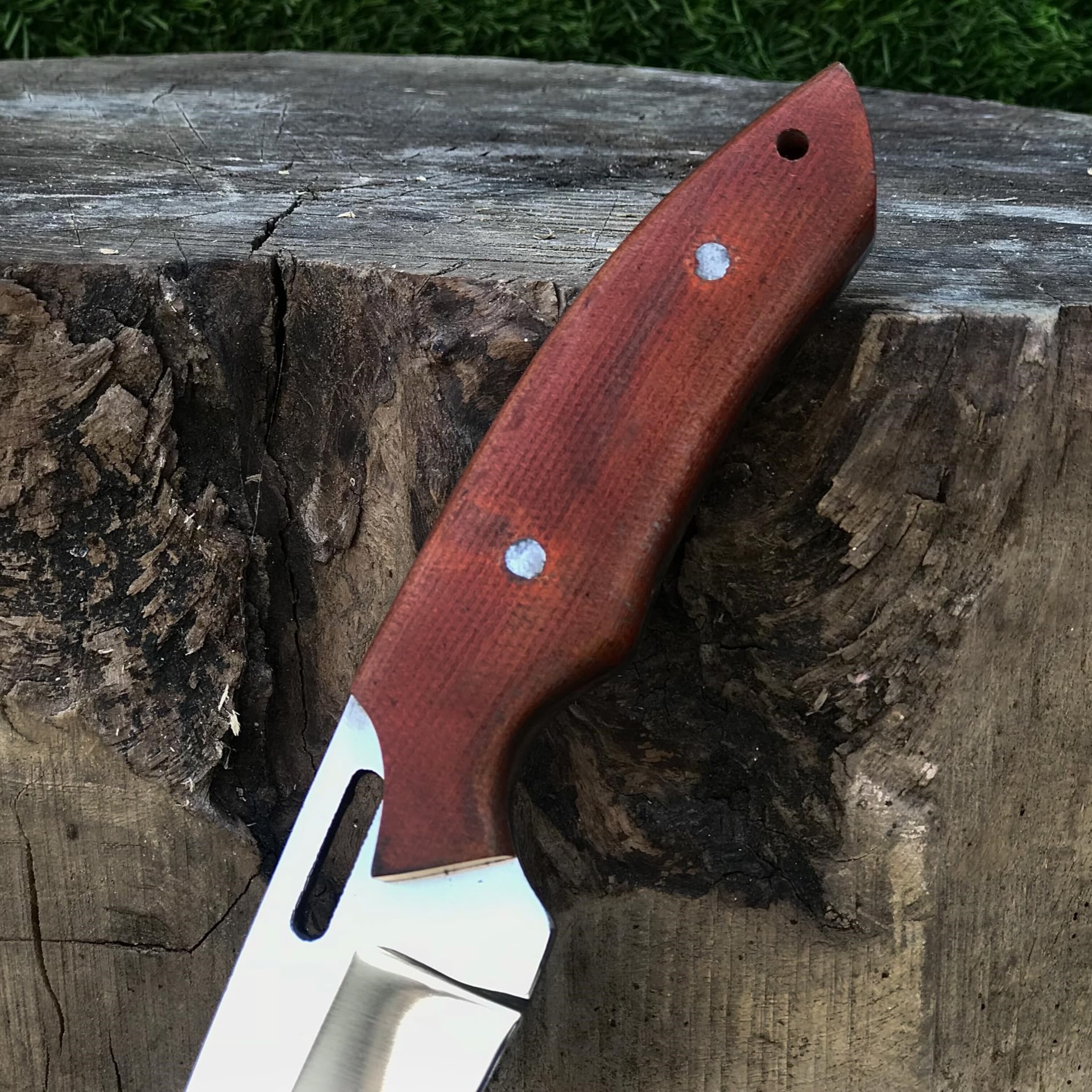Red Micarta Handle offers a non-slip, ergonomic grip