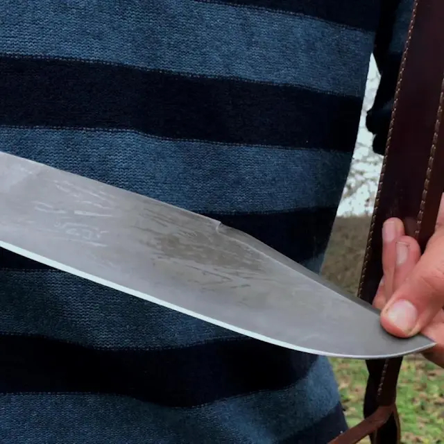 The 12-inch blade is forged from premium 1095 carbon steel with a hardness of 58–59 HRC, delivering exceptional strength, durability, and edge retention. Built for performance and reliability, this blade is suitable for outdoor tasks while maintaining a classic historical appearance.