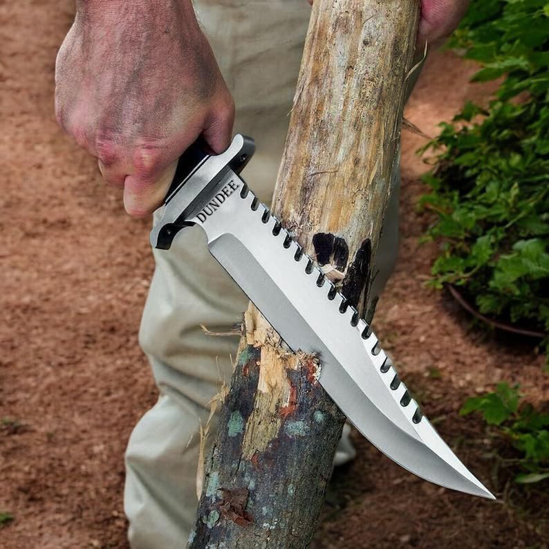 The 12-inch razor-sharp blade is forged from premium D2 tool steel with a 6mm thickness, offering exceptional toughness, edge retention, and durability. The clip point design ensures precision cutting, while the hollow grind allows easy sharpening and maintenance. A serrated spine adds extra functionality for cutting rope, wood, and tough materials.