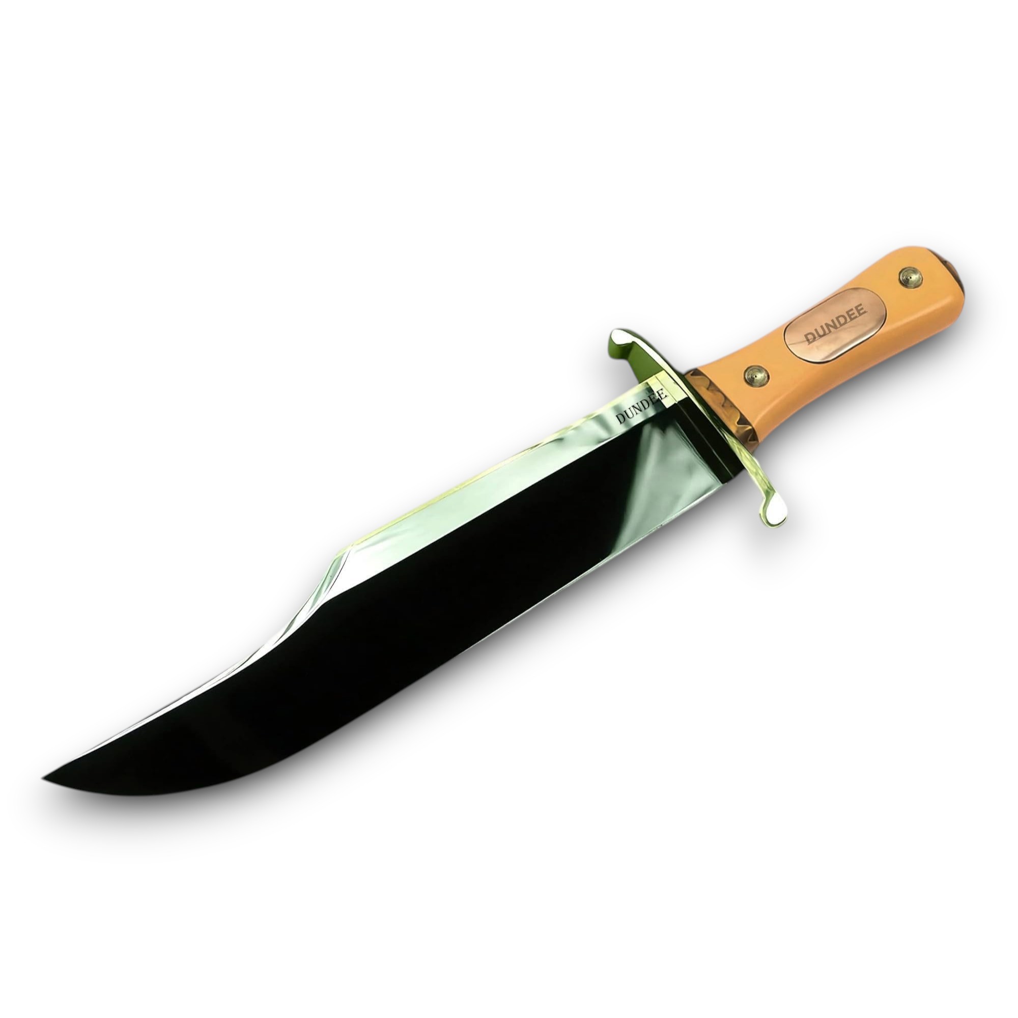 The 12-inch clip point blade is heat treated to 60–61 HRC, ensuring excellent hardness and cutting efficiency. A false top edge enhances slicing capability, while the solid construction provides stability during heavy-duty tasks.